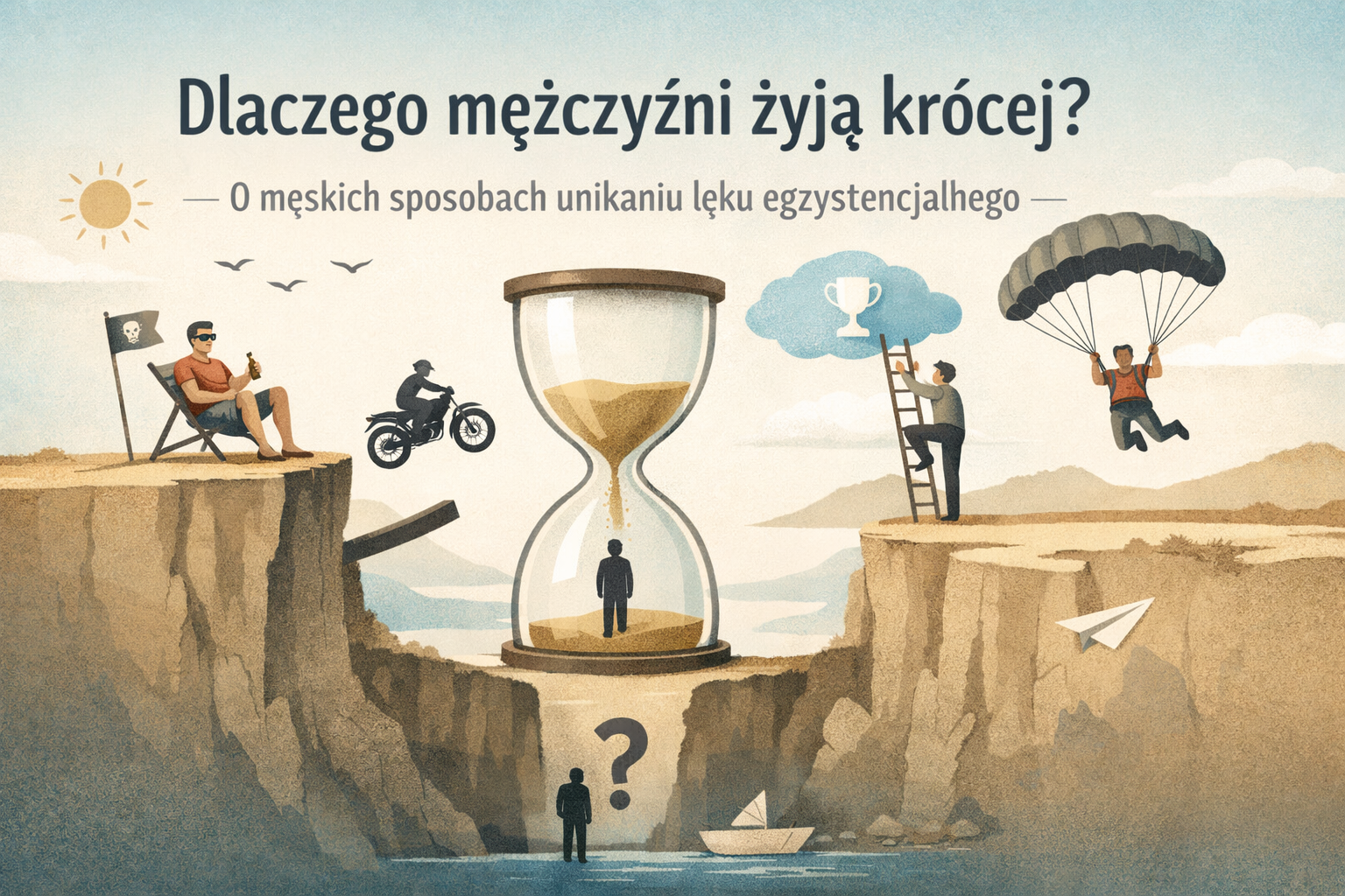 Mężczyźni statystycznie żyją krócej niż kobiety, a pytanie dlaczego mężczyźni żyją krócej wciąż bywa sprowadzane do biologii, genów albo „ryzykownych zachowań”. To jednak tylko fragment prawdy. Drugą, rzadziej nazywaną częścią, jest sposób, w jaki mężczyźni nauczyli się radzić sobie z lękiem egzystencjalnym. A raczej: jak nauczyli się przed nim uciekać.